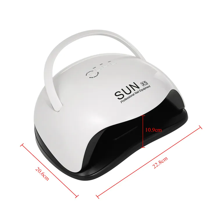 2)Uzlādējama nagu lakas lampa 54 vatu uzlādējama produkta izskats augšpusē ir nēsāšanas roktura dizains, šis dizains ir piemērots rokai visur, kur jūs varat nēsāt produktu, atrodoties ceļā.