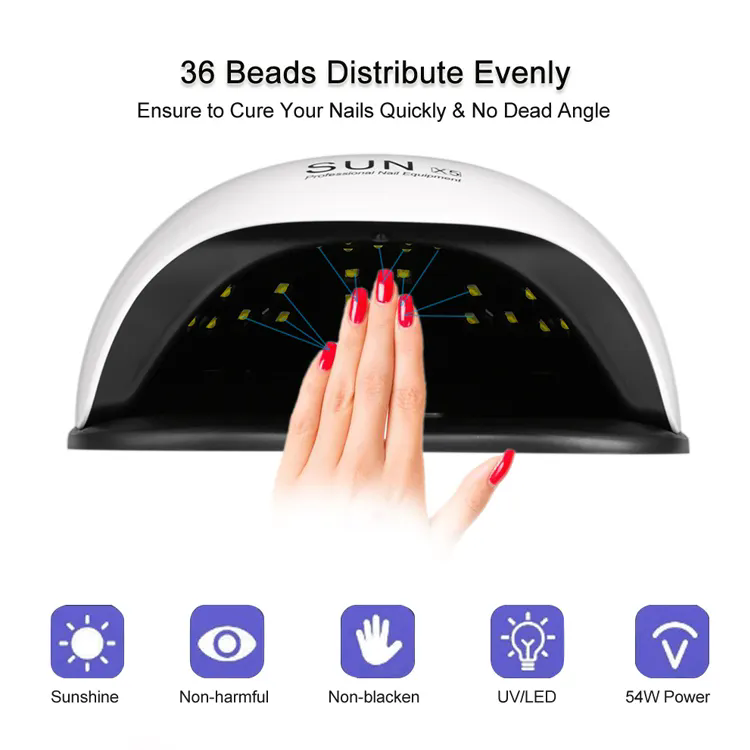 2)Uzlādējams nagu lakas lampa 54 vatu uzlādējams produkts ar 36 lampas lodītēm (365nm+405nm) UV/LED, kas izplatīta ap apkārt, pat viegla sacietēšanas UV līme, padarot nagu laku sausu ātrāk.
